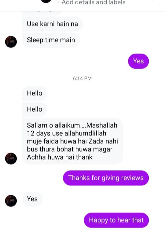 Sallam o allaikum ...Mashallah12 days use allahumdlillah muje faida huwa hai Zada nahi bus thura bohat huwa magarAchha huwa hai thank
