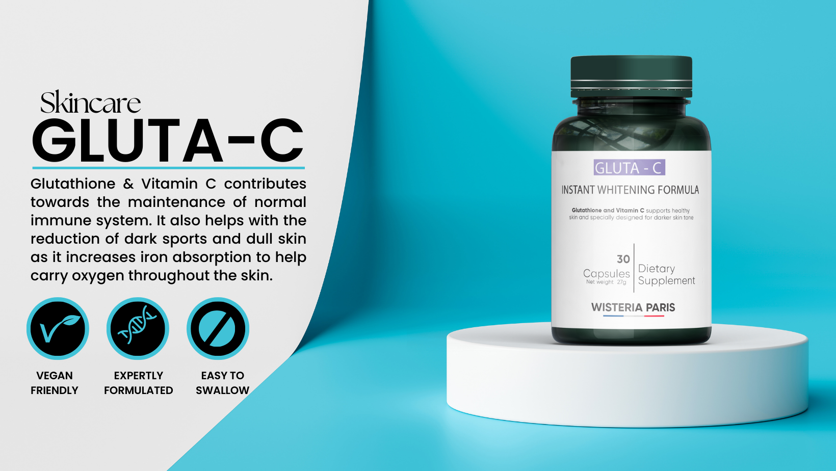 MAXIMUM SKIN EFFECT — With the combined health benefits of Glutathione and Vitamin C, the skin becomes healthier-looking from within, revealing fresh and glowing lighter, brighter, and flawless skin.
